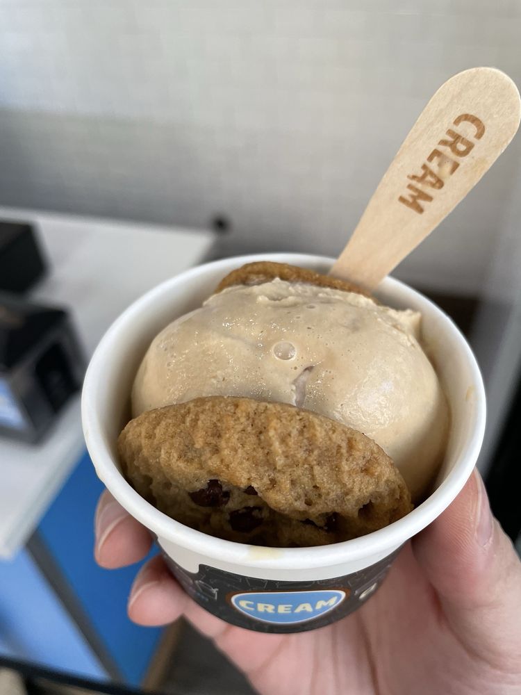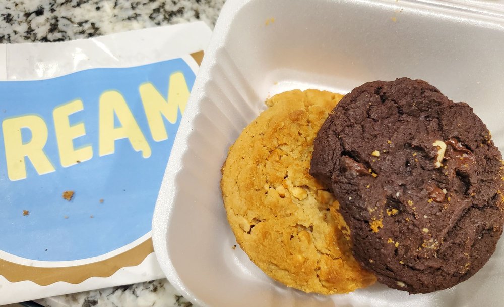 (4) snickerdoodle cookie and cup of joe ice cream (4) double chocolate chip cookie and vanilla ice cream (4) chocolate chip cookie and cookies & cream ice cream